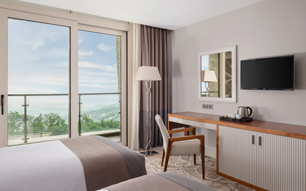 Some rooms include a living area where guests can enjoy a cup of tea while admiring views of the mountains or the pool. Rooms are equipped with flat-screen TVs with satellite channels. Each room has a private bathroom with bathrobes, slippers, and free toiletries. Superior rooms offer guests a whirlpool bath or sauna.