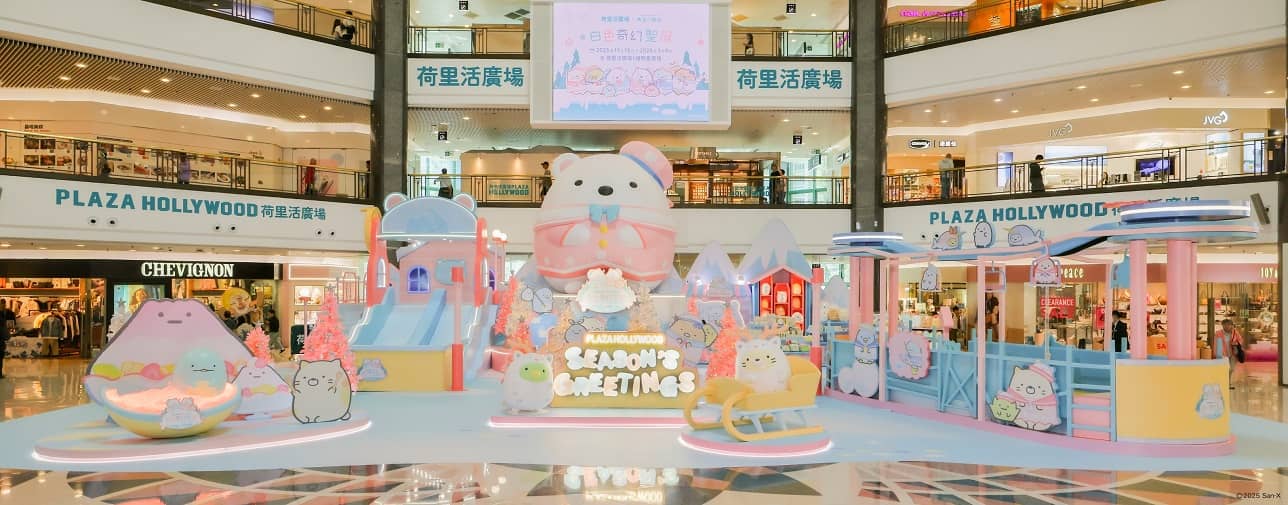香港聖誕好去處2025|今個聖誕,鑽石山荷里活廣場聯乘Sumikkogurashi角落小夥伴迎接「白色奇幻聖誕」!(2025/11/15 - 2026/1/4) 全場焦點是首次亮相的5米高巨型「白熊」毛絨裝置,聯同一眾冬日造型的角色在6大主題區等您打卡。好動的大小朋友,必要挑戰7米「冰雪極地飛索」及5米「冰極冒險滑梯」,體驗極地滑行快感!粉絲更不能錯過期間限定店,搜羅日本直送及全港首賣的獨家精品,將心愛角色帶回家!