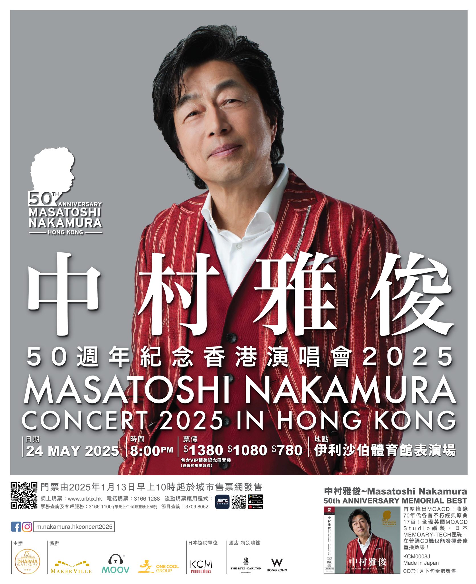*VIP 門票包含《中村雅俊50周年紀念香港演唱會2025》紀念場刊及特別版紀念掛牌,憑門票於會場換領