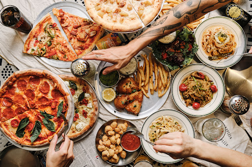 採用工業風裝潢的熱鬧餐廳,供應披薩、大蒜結麵包、炸雞、義大利麵和薯條。