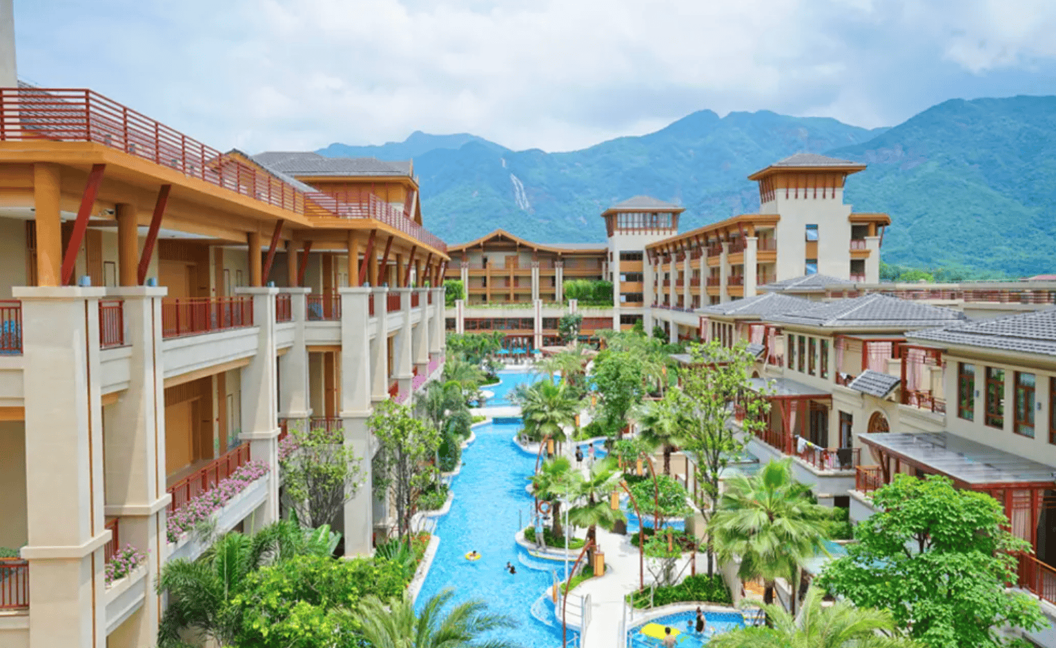 森林海溫泉度假酒店坐落廣州增城白水寨風景區南崑山南麓,是遠離都市喧囂的度假首選!擁覽群山環繞的自然美景,酒店以東南亞風格設計,完美融合自然與奢華元素。特色水上威尼斯泳道環繞一樓客房,讓住客享受推門即泳的獨特體驗!
