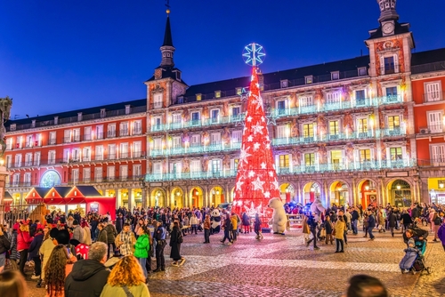 作為馬德里最具代表性的聖誕市集,Plaza Mayor聖誕市集已有超過100年歷史,每年吸引數以萬計遊客到訪。這裡有超過100個傳統木製攤檔,販售各式聖誕裝飾品、手工藝品及當地特色食品。最特別的是這裡有大量「笑話玩具店」,售賣各式有趣的惡作劇道具,是西班牙聖誕傳統「Día de los Santos Inocentes」(無辜聖嬰日)的重要組成部分。