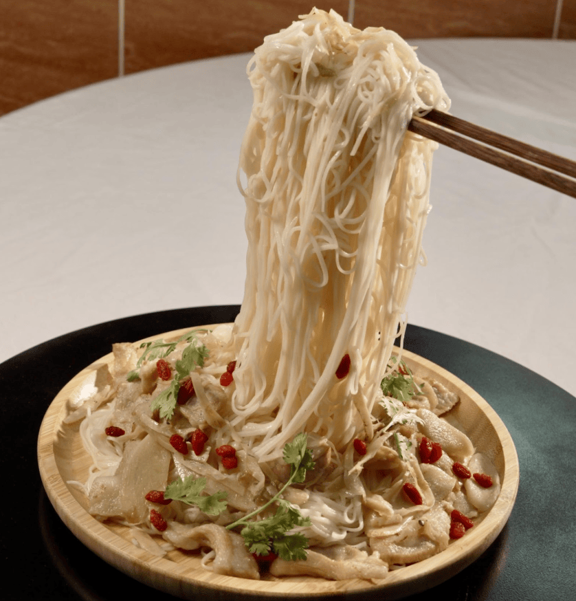 有吃過松阪豬麵線嗎?先將頂級松阪豬川燙至七分熟鎖住肉汁甜味,再用麻油香煎至外層呈現誘人的金黃酥香質感,麵線另外川燙至最佳口感後淋上獨門秘方醬汁,佐以枸杞的甘甜、香菜和牛蒡絲的清爽,與在地特產球梅點綴,在清爽中帶出豐富的層次感,兼具濃郁香氣與優雅視覺之美!